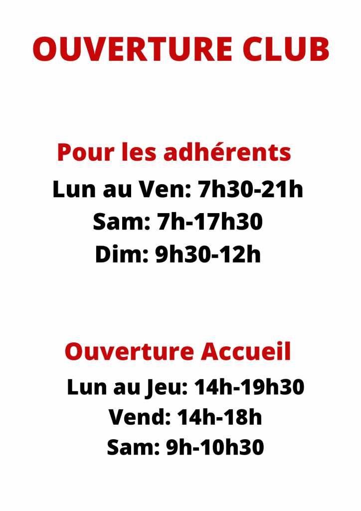 voir détails à l’accueil du club, réduction étudiants et couples.