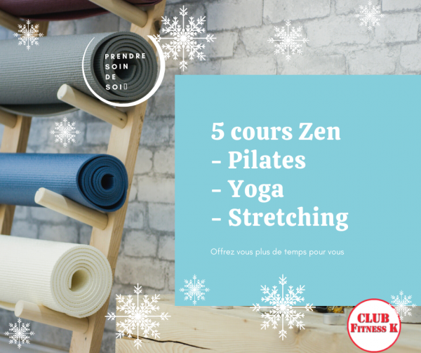 Bon cadeau 5 cours Zen.  Il vous suffira de retirer votre bon cadeau à l’accueil du club après le paiement en ligne. Valable 3 mois.